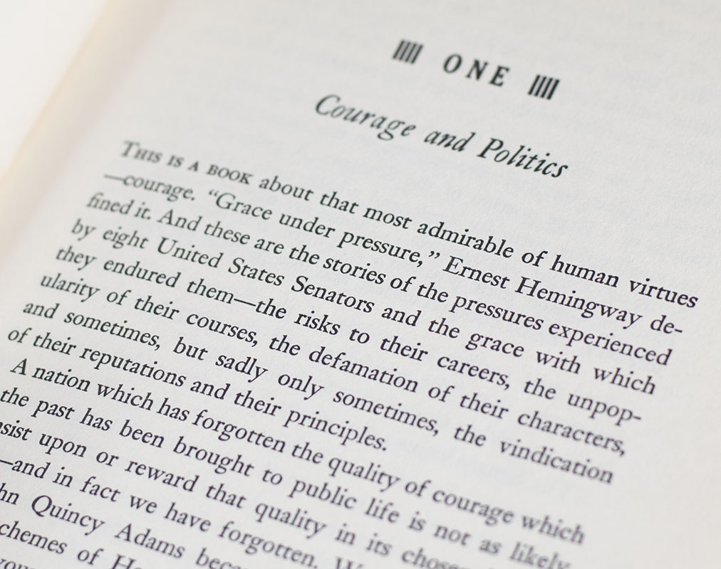 The Pulitzer Prize-winning book was written when Kennedy was the junior senator from Massachusetts, and it served as a clarion call to every American. The inspiring accounts of eight previous heroic acts by American patriots inspired the American public to remember the courage progress requires. Now, a half-century later, it remains a classic and a relevant testament to the national spirit that celebrates the most noble of human virtues. Kennedy relates these heroisms to sketches of American politicians who have risked their careers for principle. "A man does what he must," he wrote, "in spite of personal consequences, in spite of obstacles and dangers and pressures-and that is the basis of all human morality."