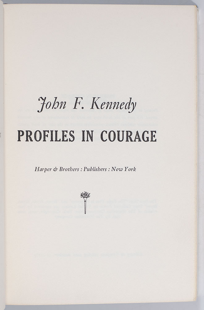 “To be courageous, these stories make clear, requires no exceptional qualifications, no magic formula, no special combination of time, place and circumstance. It is an opportunity that sooner or later is presented to us all": John F. Kennedy's Profiles In Courage; Inscribed by Him