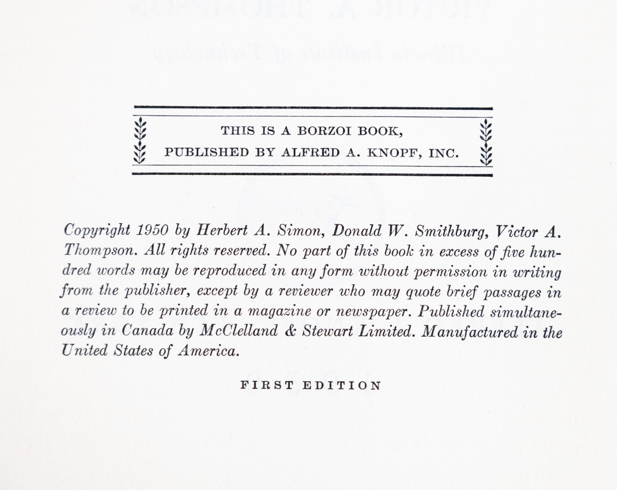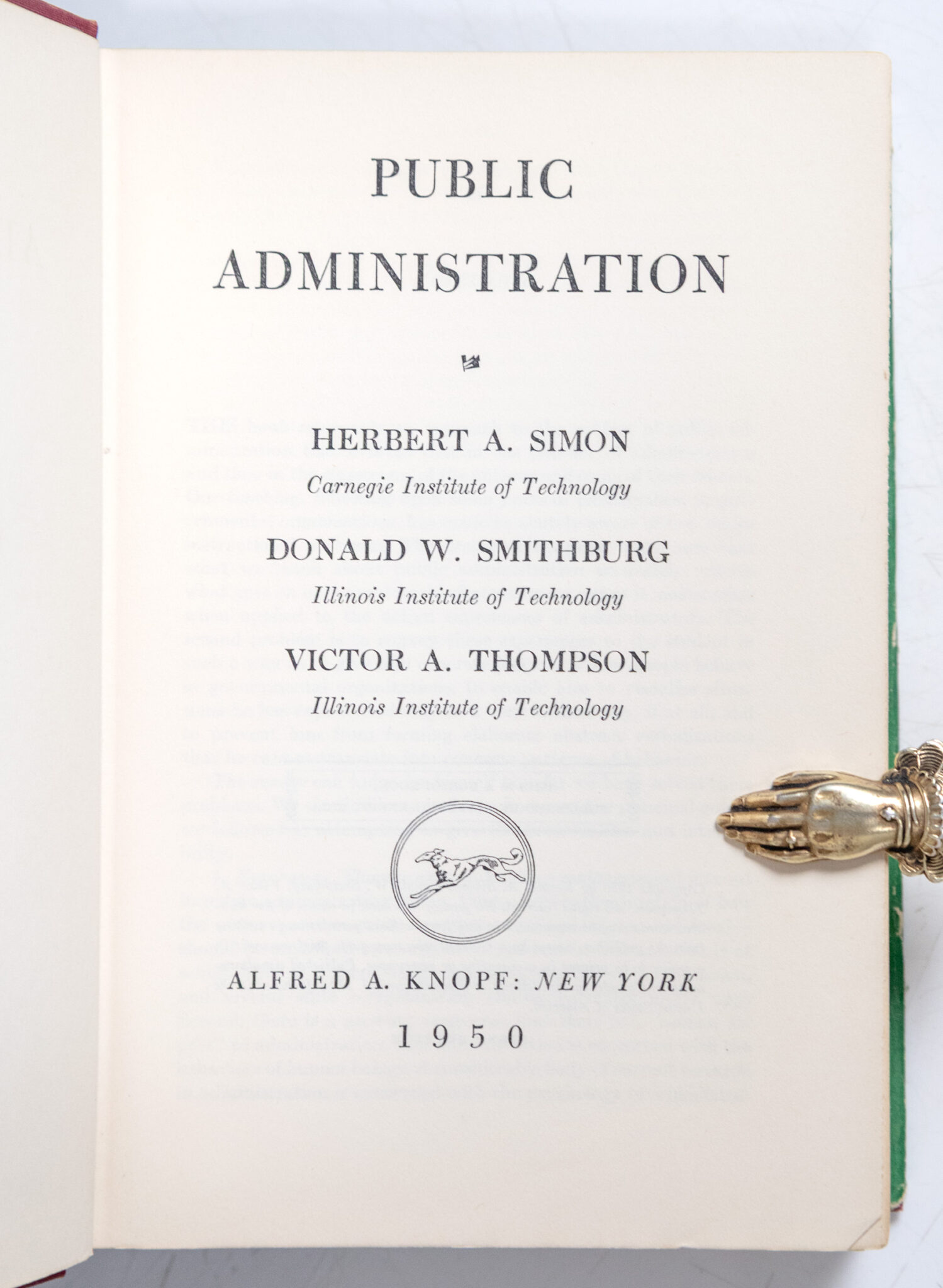 First Edition of Herbert A. Simon, Donald W. Smithburg, and Victor A. Thompson's Public Administration