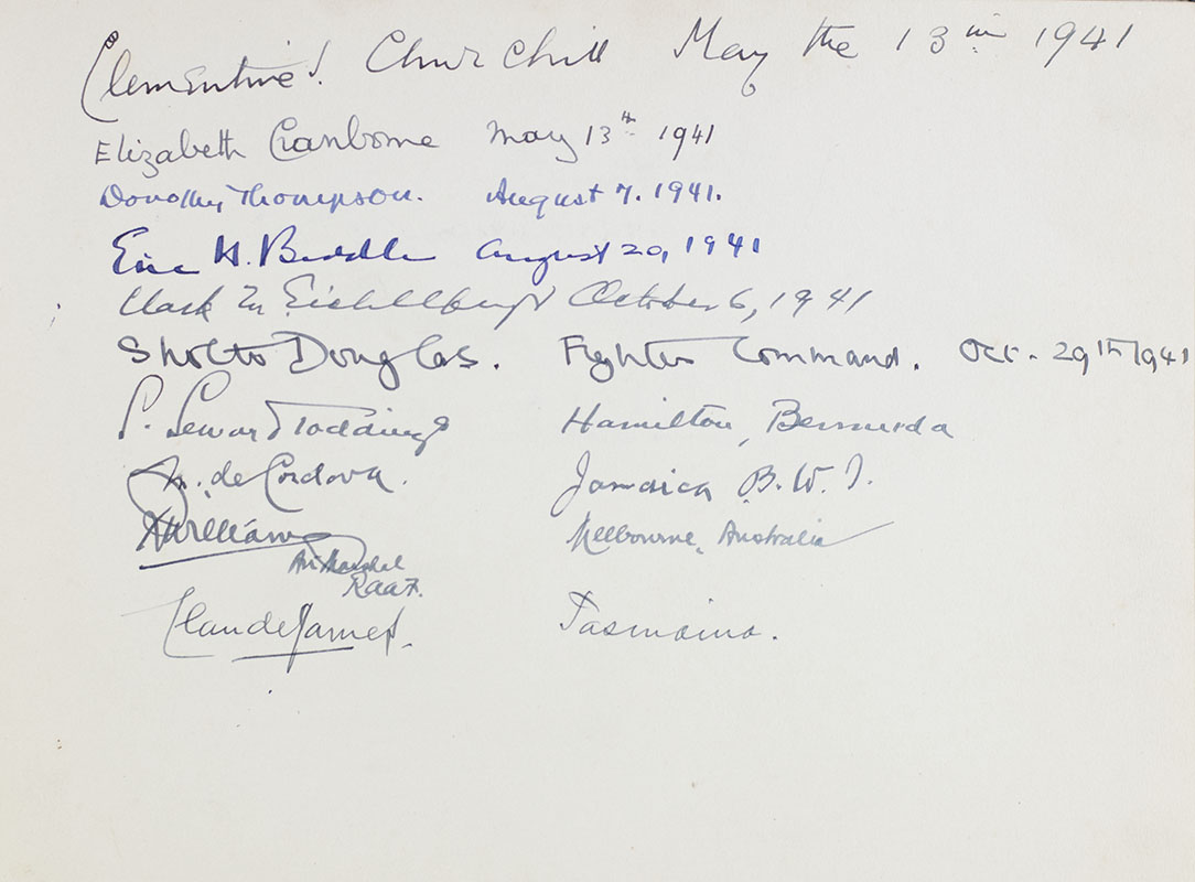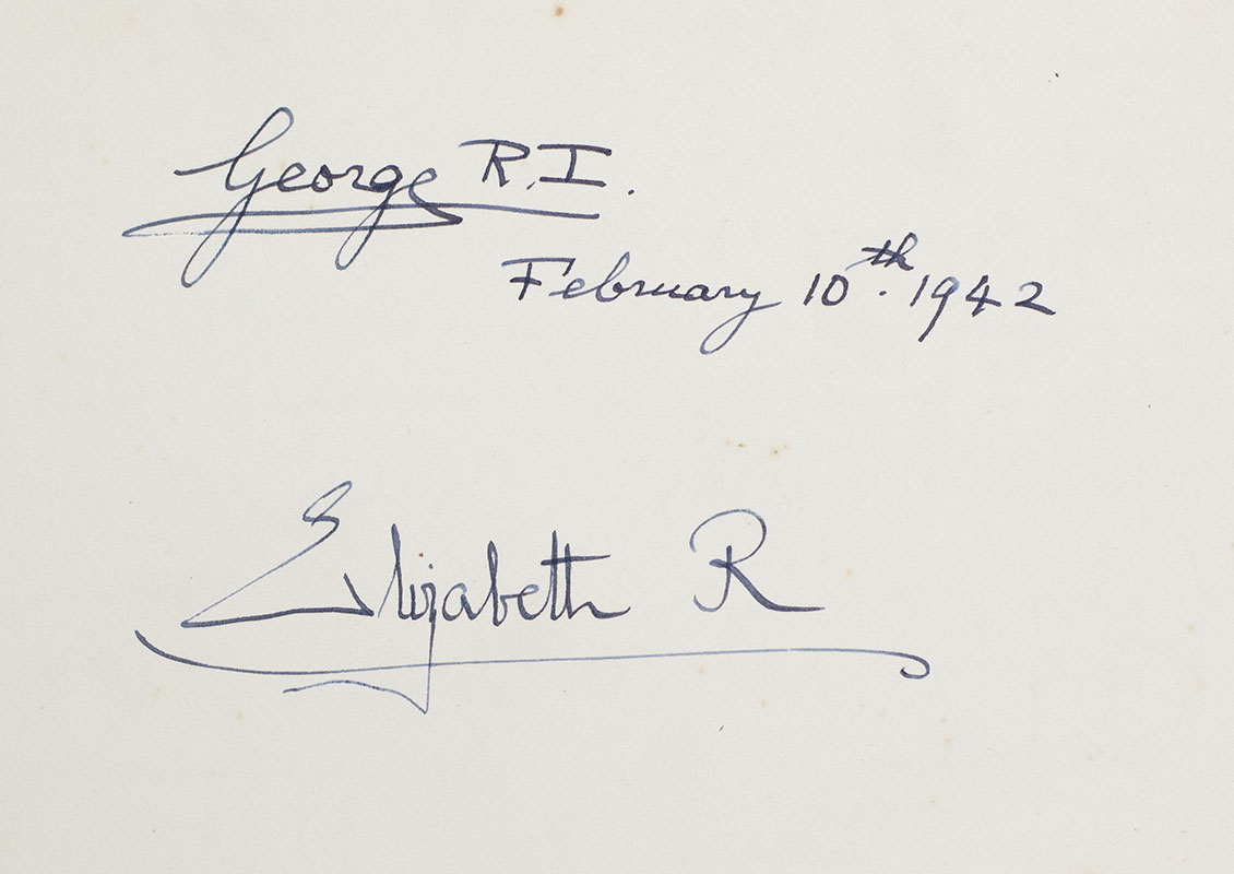 Queen Elizabeth, King George VI and Clementine Churchill Signed WWII Guestbook.