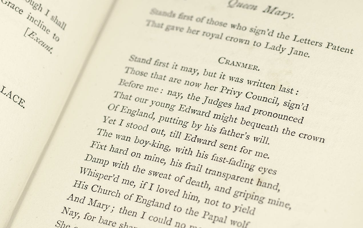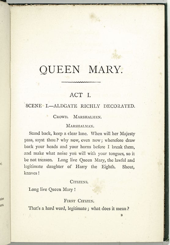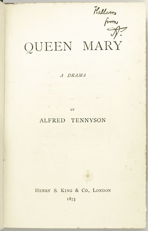 First Edition of Alfred Lord Tennyson's Queen Mary: A Drama; inscribed by him to his son Hallam Tennyson