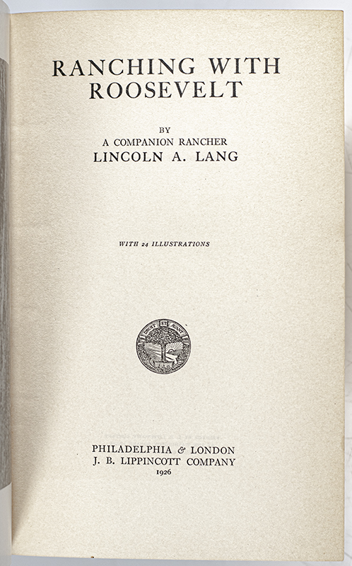 "A strange place, a strange crowd this, sure enough, into which we suddenly dropped that April afternoon": First edition of Lincoln A. Lang's Ranching With Roosevelt