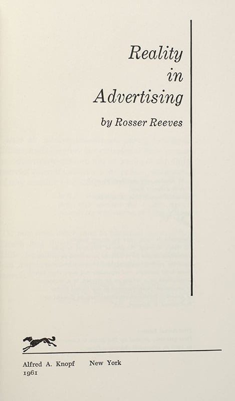 "Advertising is, actually, a simple phenomenon in terms of economics. It is merely a substitute for a personal sales force - an extension, if you will, of the merchant who cries aloud his wares": First Edition of Rosser Reeves' Reality in Advertising; Signed by Him
