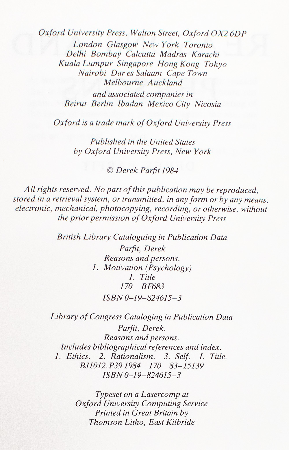 Reasons and Persons.