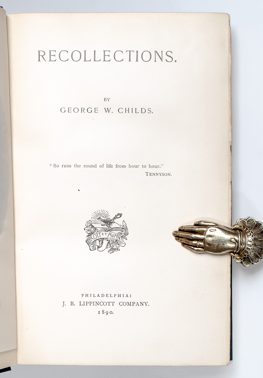First Edition of George W. Child's Recollections; Inscribed by Him to General William Tecumseh Sherman