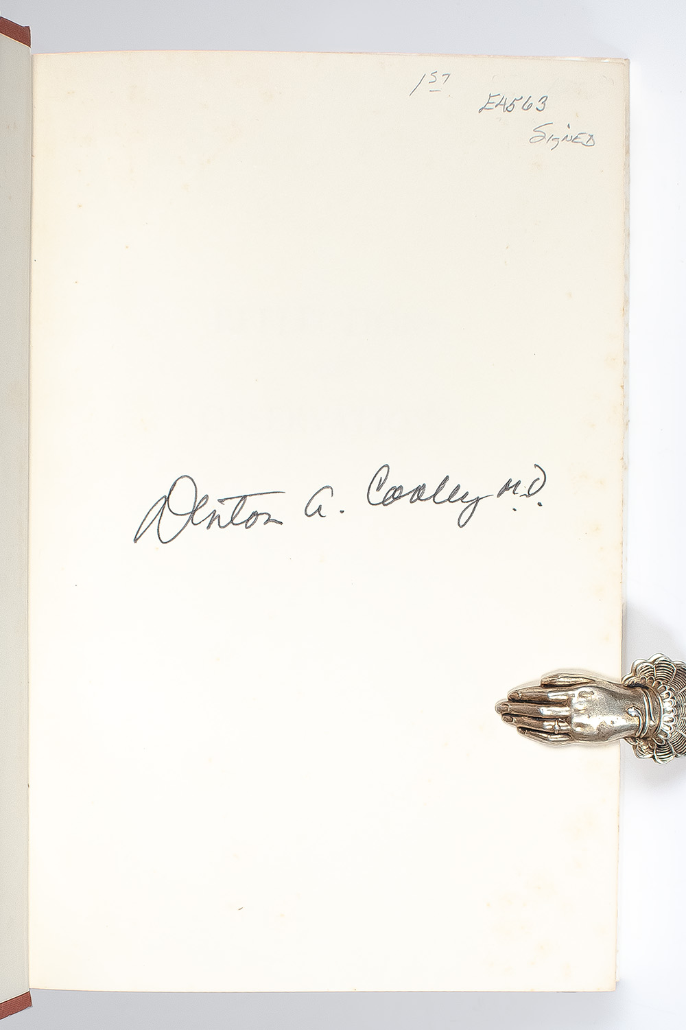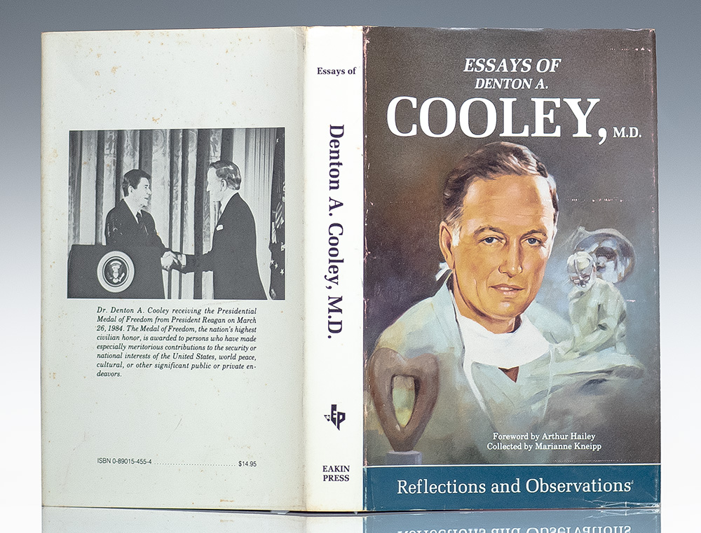First edition of this collection of essays which illuminates, with brilliant insight, our contemporary world of medicine. Octavo, original cloth. Boldly signed by Denton A. Cooley on the front free endpaper. Near fine in a near fine dust jacket. Collected by Marianne Kneipp. Foreword by Arthur Hailey.