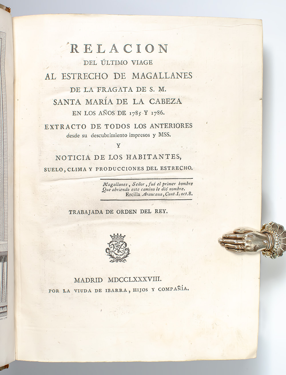 Relacion Del Ultimo Viage al Estrecho de Magallanes de la Fragata De S. M. Santa Maria de la Cabeza en los Anos de 1785 y 1786. [Account of the Last Voyage to the Strait of Magellan by His Majesty's Frigate Santa María de la Cabeza in the Years 1785 and 1786].