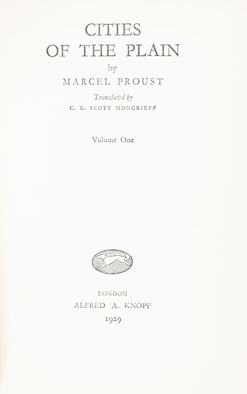 PROUST, Marcel [Translated by C. K. Scott Moncrieff].