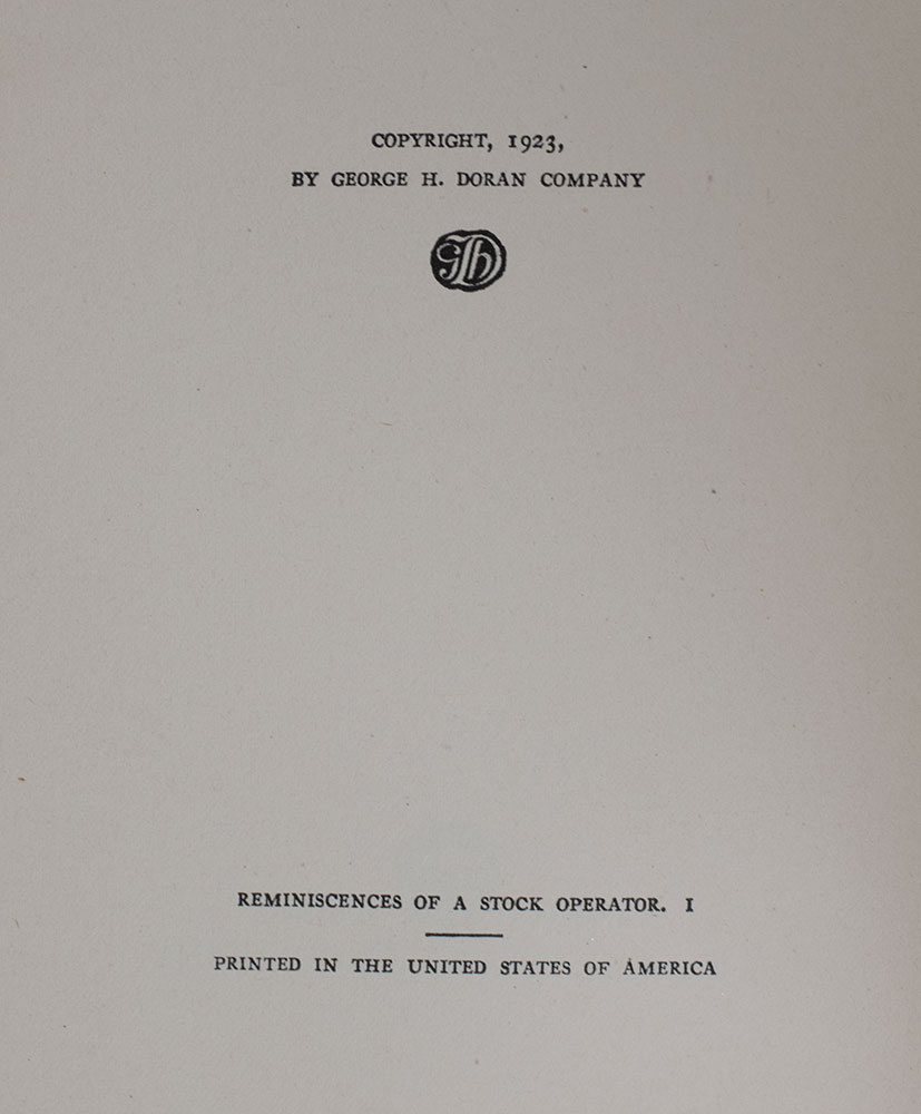One of the most highly recommended investment books ever written; Rare First Edition of Reminiscences of a Stock Operator