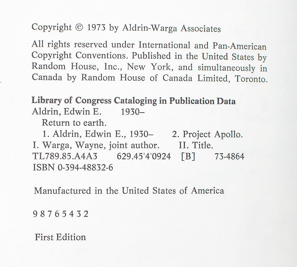 First Edition of Buzz Aldrin and Wayne Warga's Return to Earth; Signed by Buzz Aldrin