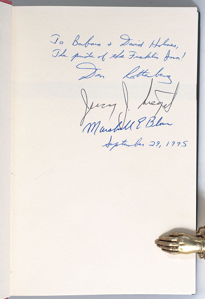 First edition of this informative history of the New York Stock Exchange. Octavo, original half cloth. Presentation copy, inscribed by all three authors on the front free endpaper, "To Barbara and David Holmes The pride of the Franklin Inn! Dan Rottenberg, Jeremy Siegel and Marshall E. Blume." Fine in a fine dust jacket. Jacket design by Tony Greco.