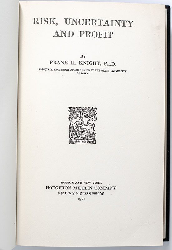 “Economics, or more properly theoretical economics, is the only one of the social sciences which has aspired to the distinction of an exact science": First Edition of Frank H. Knight's Risk, Uncertainty, and Profit