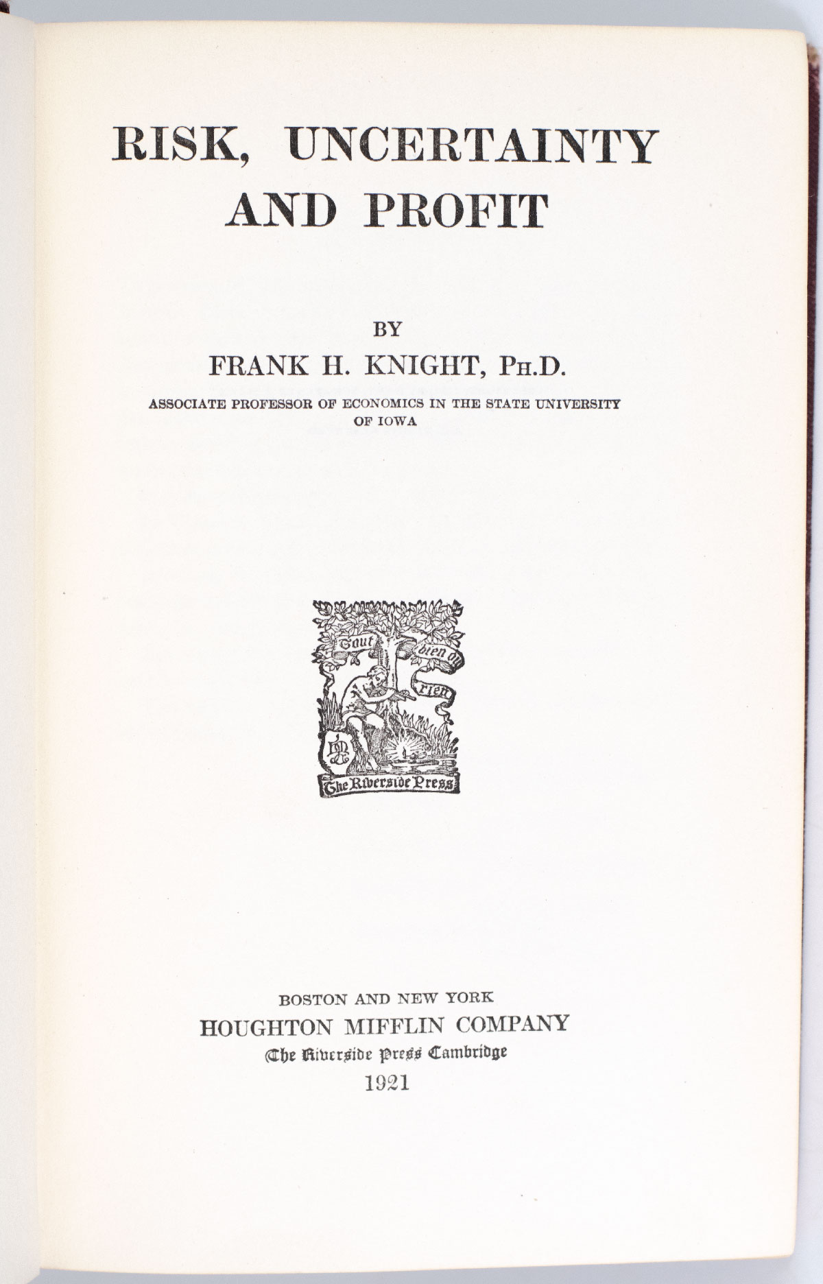 “Economics, or more properly theoretical economics, is the only one of the social sciences which has aspired to the distinction of an exact science": Rare first edition, early printing of Frank H. Knight's Risk, Uncertainty, and Profit