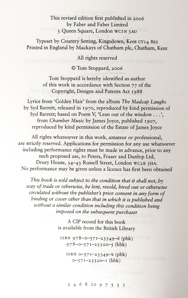 "I am not my body. My body is nothing without me": First Edition of Rock ‘n’ Roll; Signed by Tom Stoppard