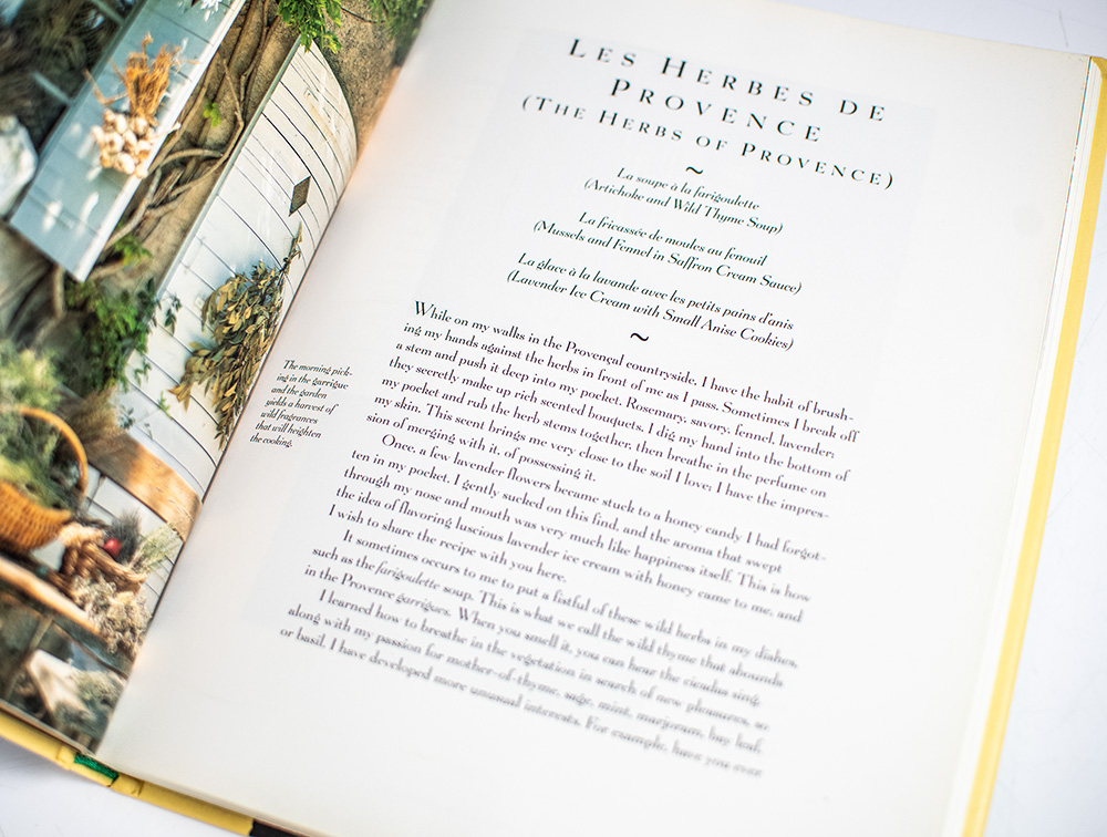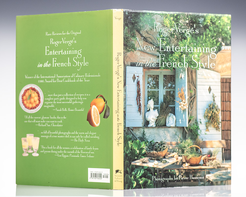 First American edition of this cookbook that presents an elegant yet approachable vision of French hospitality. Quarto, publisher's original pictorial boards, pictorial endpapers, illustrated throughout. Inscribed in French by Roger Vergé on the half-title page. Fine in a fine dust jacket. Photography by Pierce Hussenot. Food styling by Laurence Mouton. In collabortaion with Adeline Brousse. Ownership stamp to the verso of the front free endpaper, "From the Culinary Library of Cat Cora."