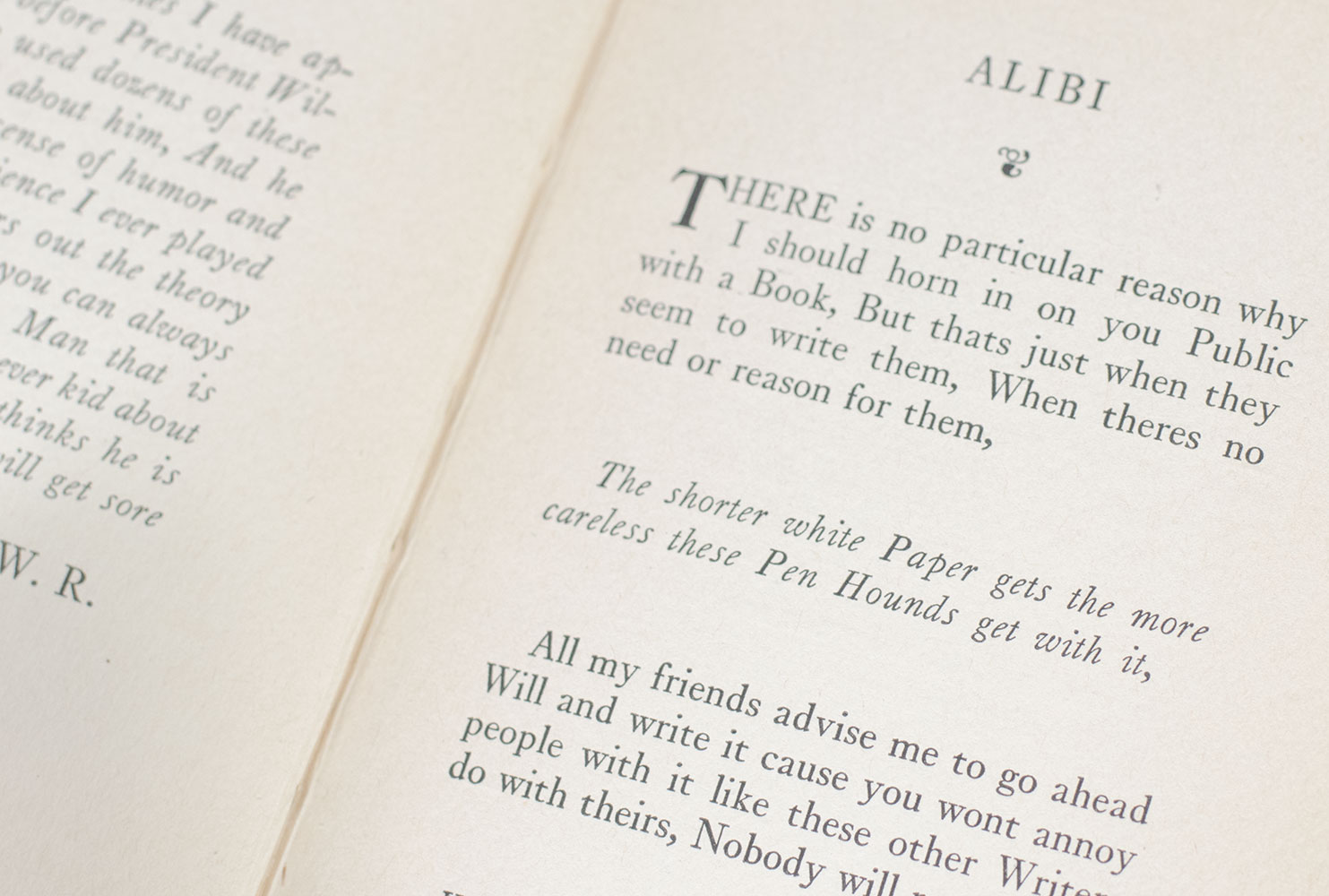 First edition of Will Rogers' first book. Octavo, original pictorial cloth, frontispiece. Signed by the author on the front free endpaper, "Yours, Will Rogers." In very good condition.