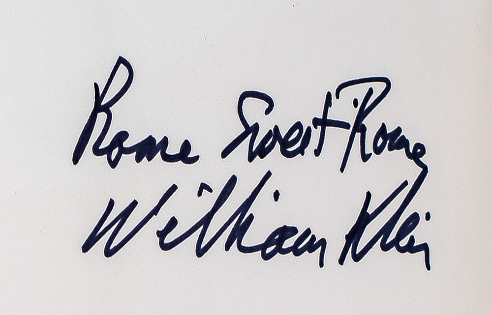 First edition of the second volume in Klein's acclaimed series of "city" books. Quarto, original cloth, illustrated with photographs. Signed by the photographer on the half-title page, "Rome Great Rome William Klein." Near fine in a near fine dust jacket.