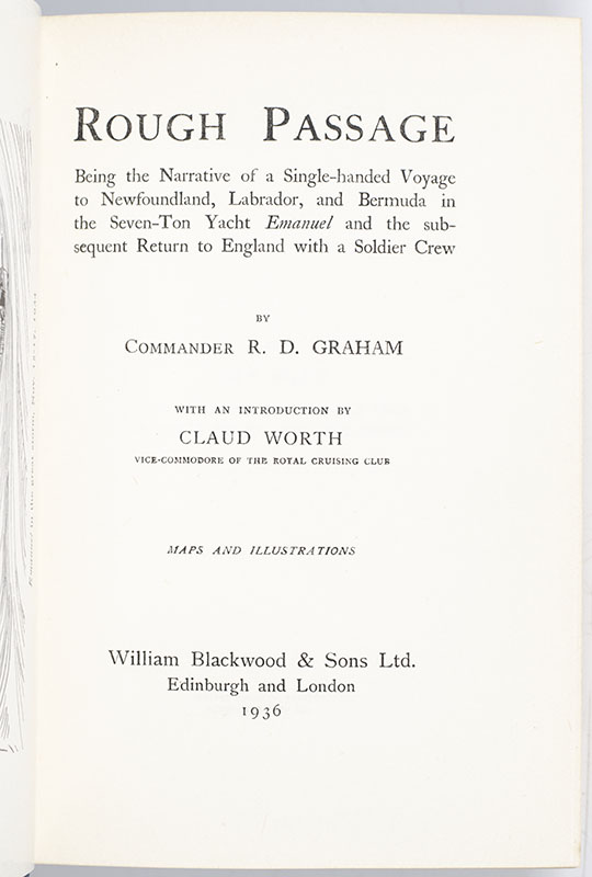 "One of the most remarkable and adventurous small boat voyages of modern times": First edition of Commander R. D. Graham's Rough Passage; from the library of adventurer and explorer Steve Fossett