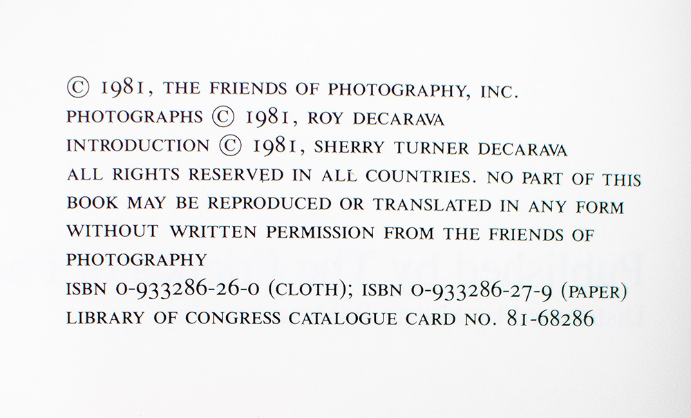 First edition of this piece of human artistry. Square quarto, original full linen, illustrated with 82 laser-scanner reproductions of DeCarava's exceptional work. Near fine in a very good dust jacket. Introduction by Sherry Turner DeCarava.