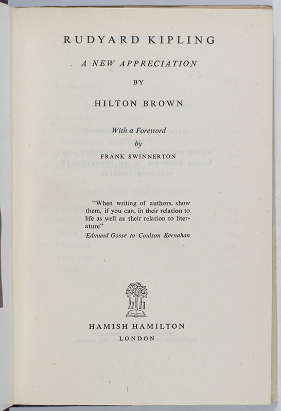 First edition of Hilton Brown's Rudyard Kipling: A New Appreciation