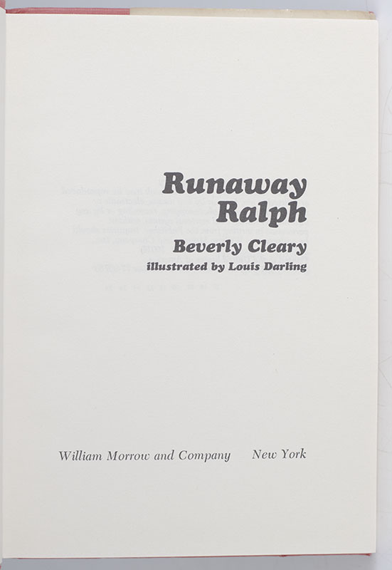 "Ralph was the only mouse in the Mountain View Inn who owned a motorcycle": Beverly Cleary's Runaway Ralph; Signed by Her