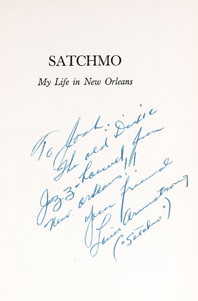 Louis Armstrong's Satchmo: My Life in New Orleans; lengthily inscribed by him