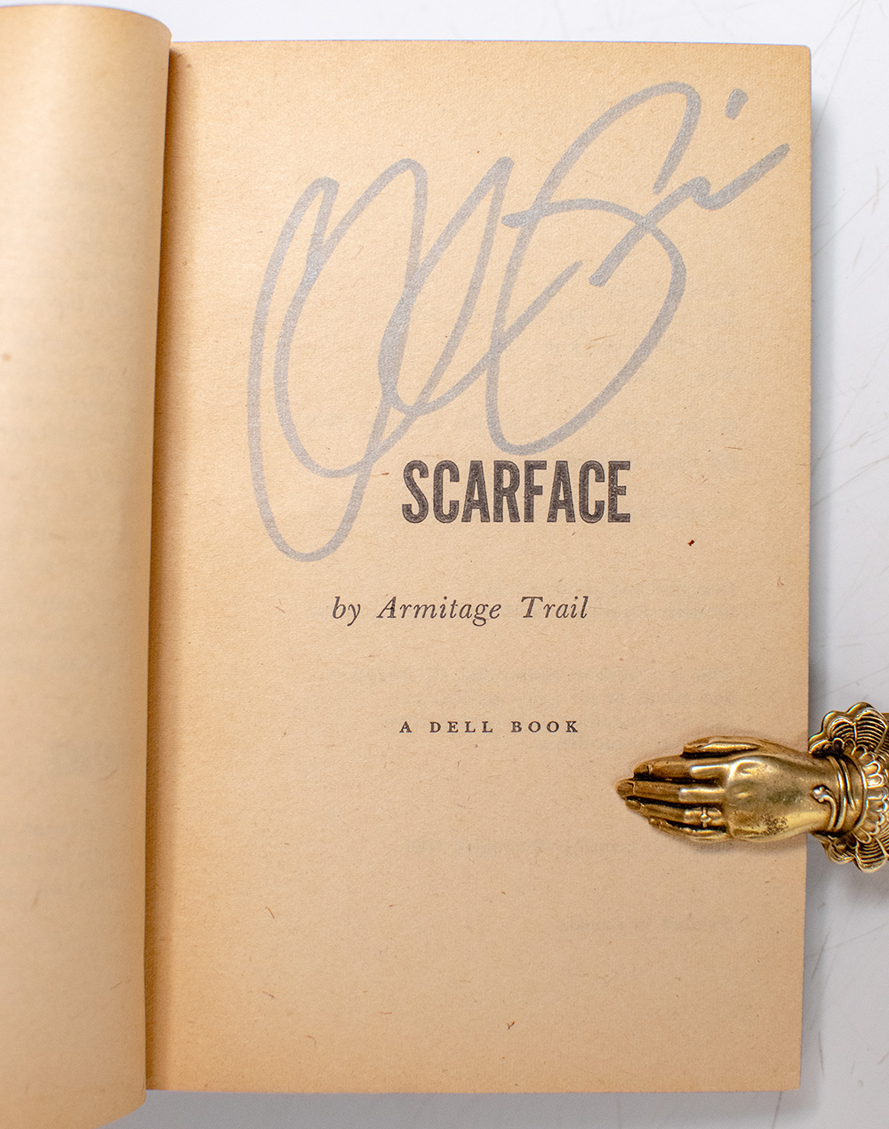 “It wasn’t just about money—it was about power. Respect. Making people know your name": First edition of Armitage Trail's Scarface; signed twice by Academy Award-winning Actor Al Pacino