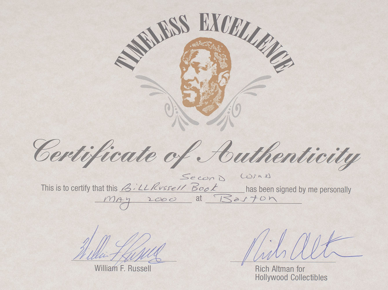 First edition of this powerful memoir by the legendary champion and civil rights advocate. Octavo, original cloth. Boldly signed the author and co-author Taylor Branch on the front free endpaper, "Bill Russell #6." Additionally lengthily inscribed by Pulitzer Prize-winning co-author Taylor Branch on the title page. Also laid in is a certificate of authenticity signed in Russell's hand "William F. Russell." Near fine in a very good dust jacket. Jacket design by The Artworks. Jacket photograph by Bob Peterson. Rare and desirable signed.