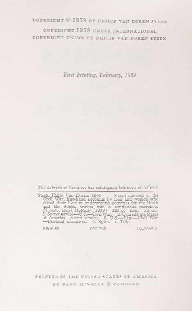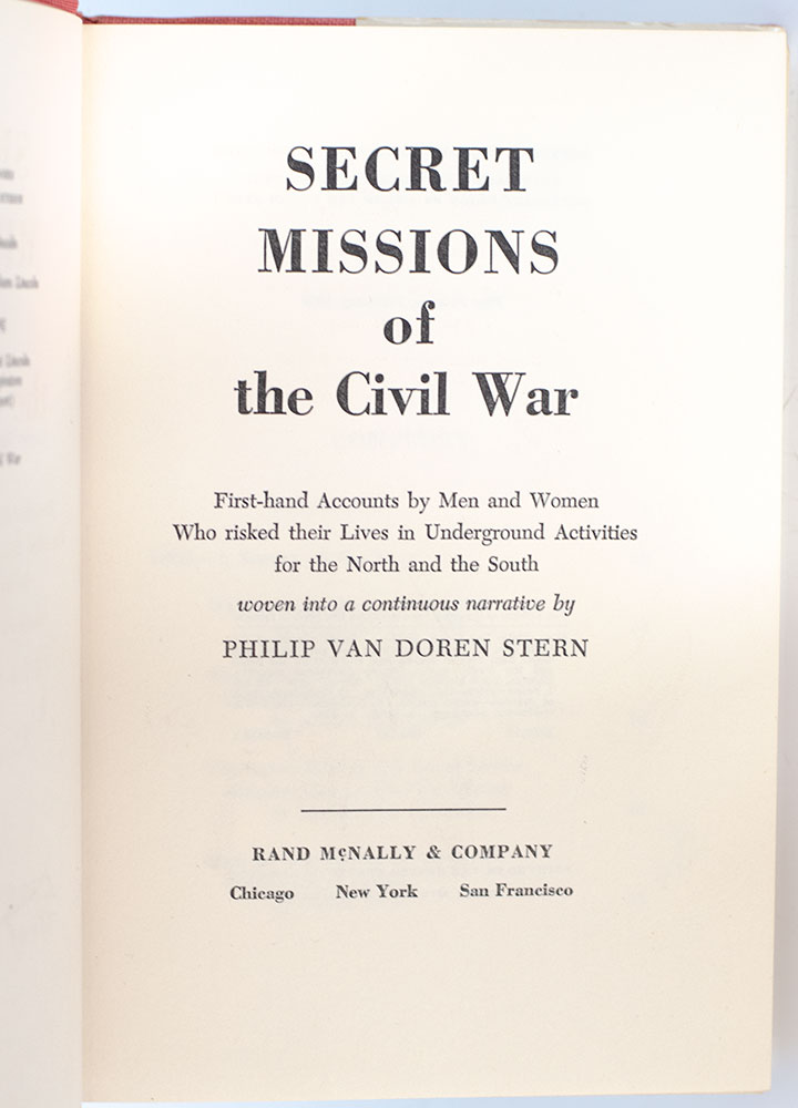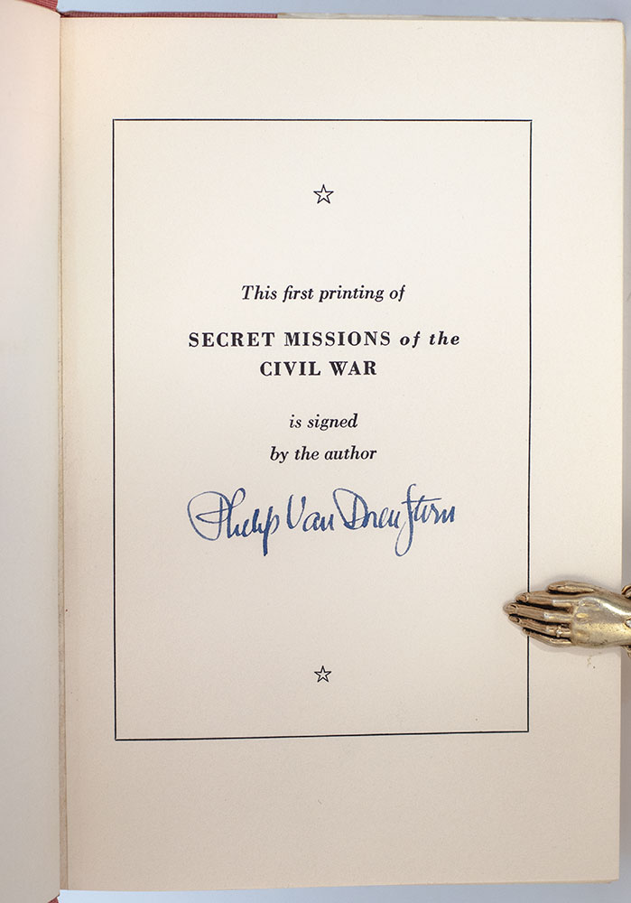 First edition of Philip Van Doren Stern's Secret Missions of the Civil War; signed by him