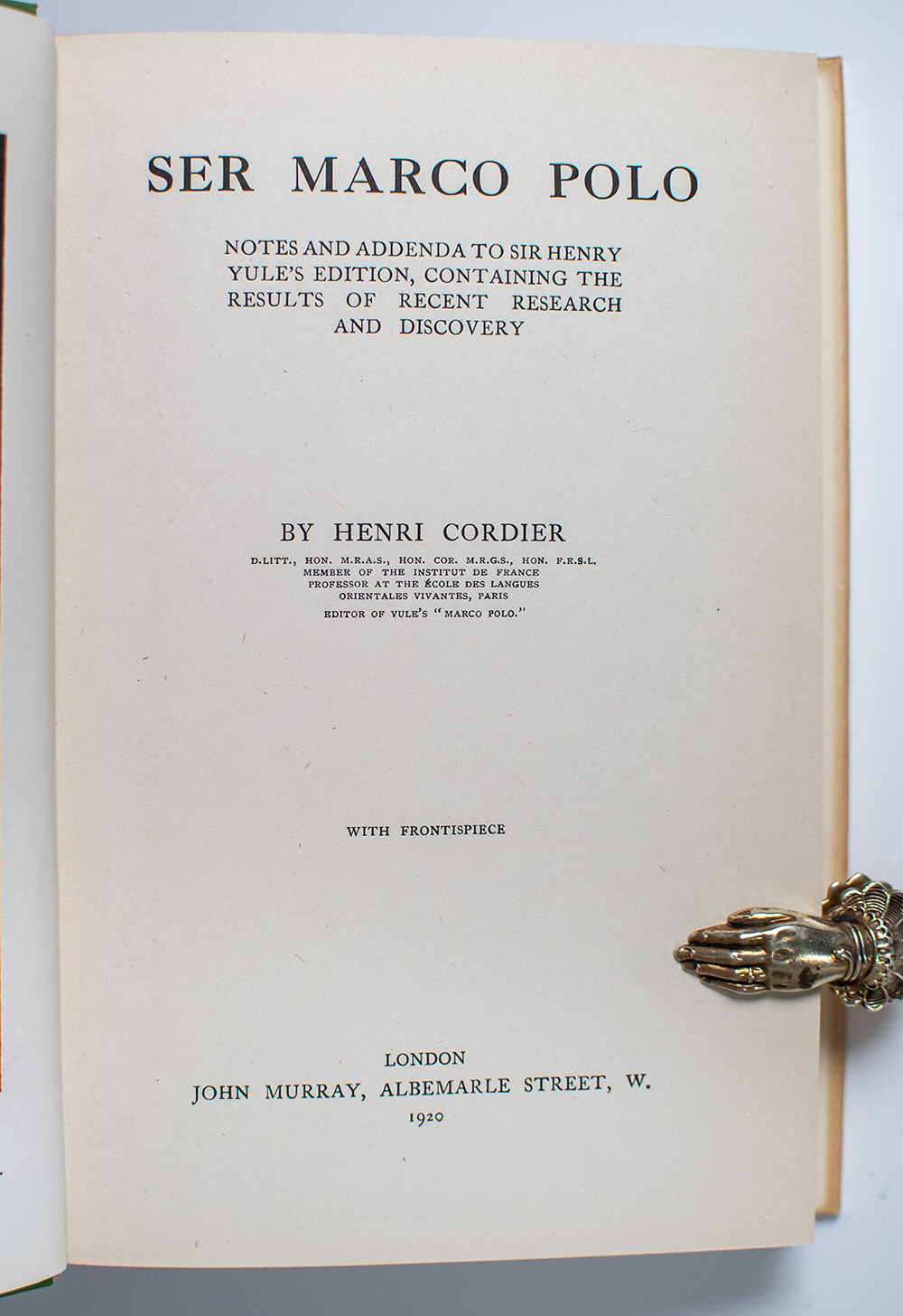 First Edition of Henri Cordier's Ser Marco Polo: Notes and Addenda to Sir Henry Yule's Edition; in the rare original dust jacket