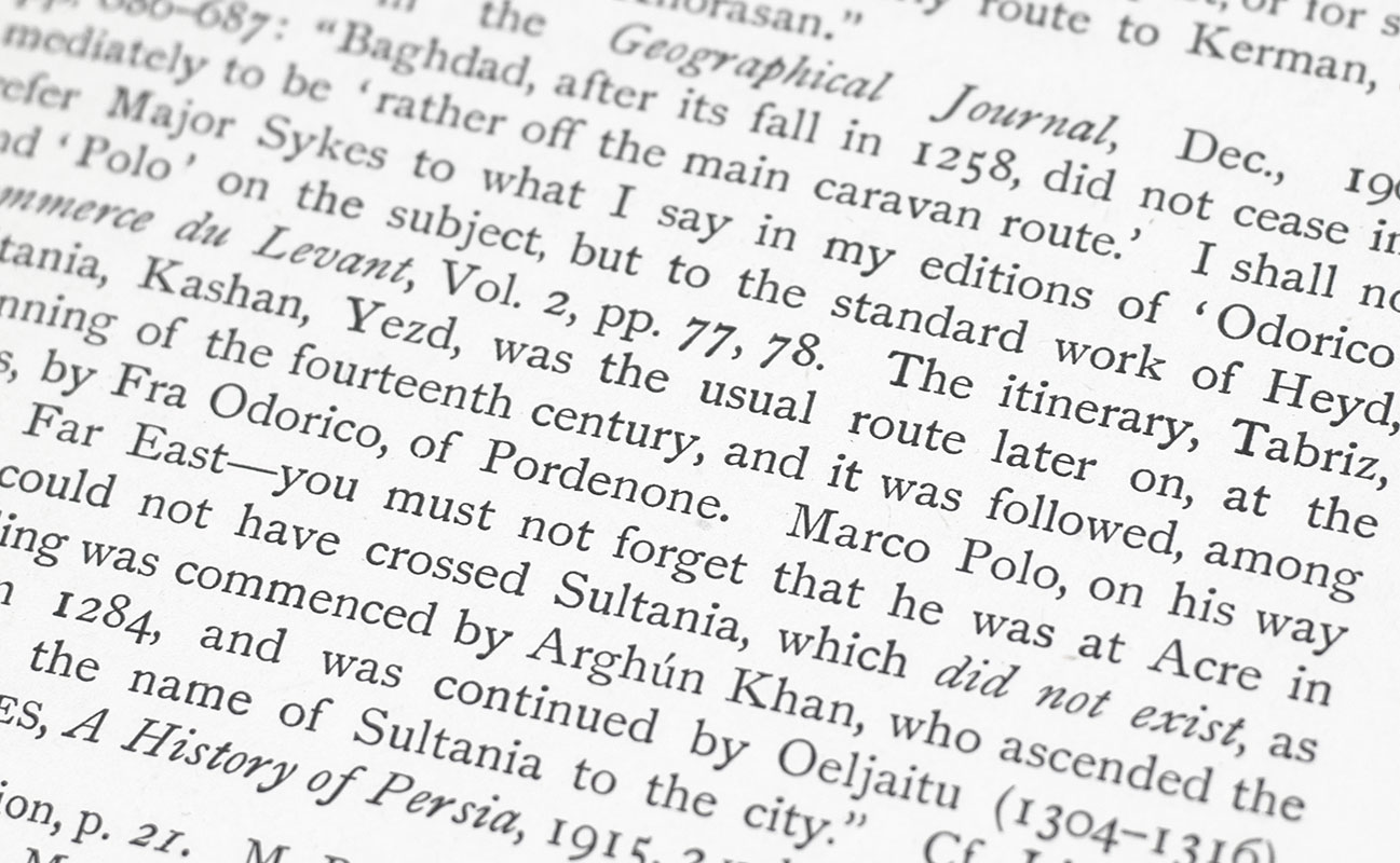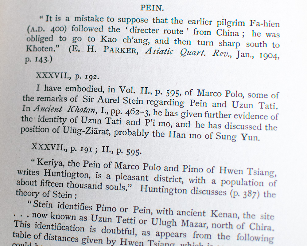 Venetian merchant and explorer Marco Polo's travels were first recorded in his Livre des merveilles du monde (Book of the Marvels of the World, also known as The Travels of Marco Polo, c. 1300), a book that described to Europeans the wealth and great size of China, its capital Peking, and other Asian cities and countries. Centuries later, Scottish Orientalist Henry Yule's most important contribution was in clarifying Polo's routes by identifying and matching the medieval geographic place names used by Polo and his transcribers with their actual present-day locations and names. Cordier's supplement contains new information obtained as a result of voyages undertaken by Sir Aurel Atein, Scen Hedin, Pelliot and others.