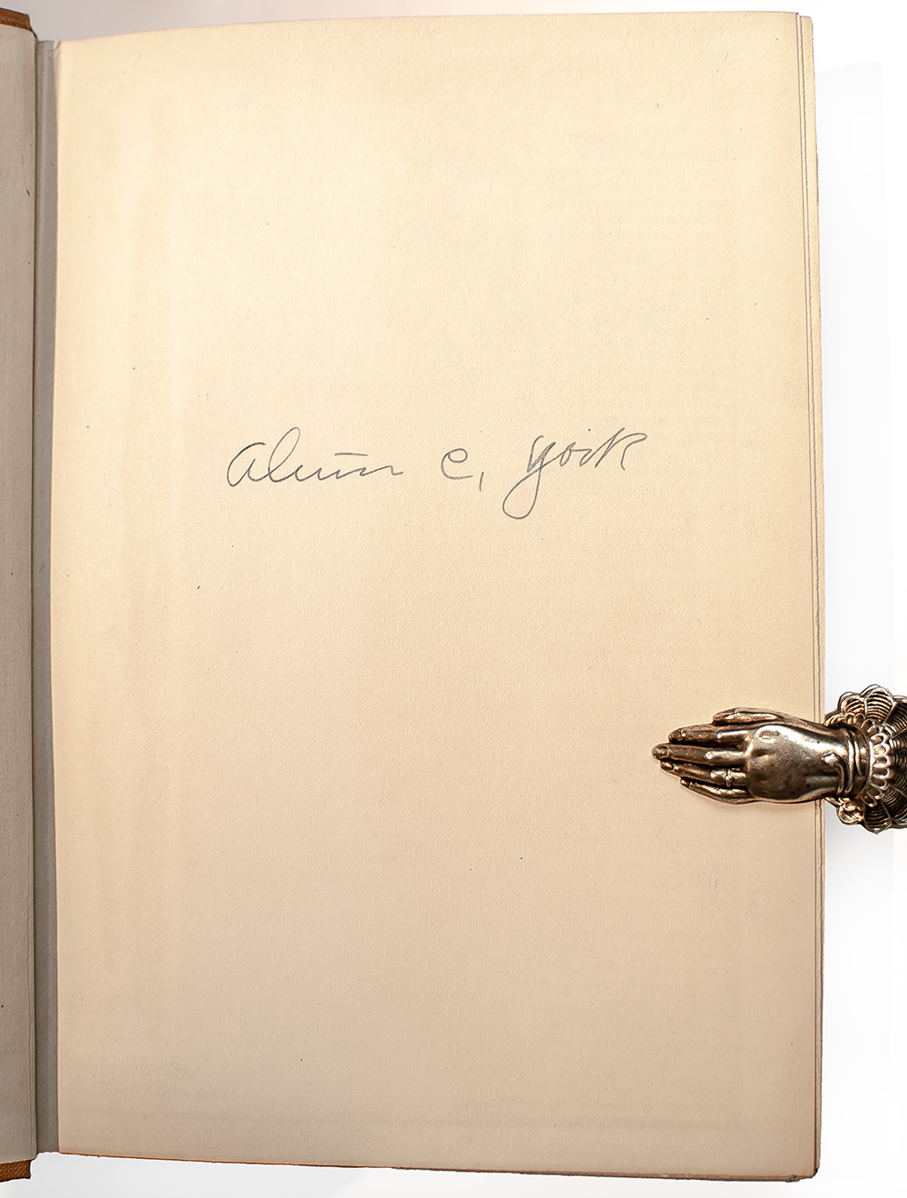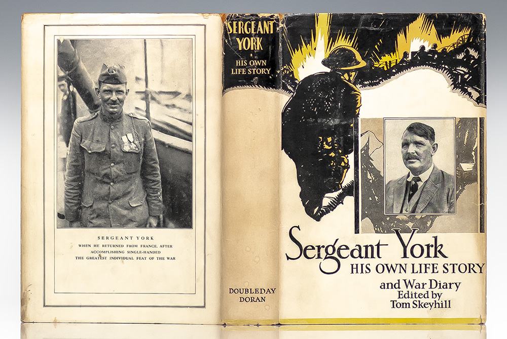 First edition of this classic work by one of the most decorated soldiers, basis for the 1941 film directed by Howard Hawks, starring Gary Cooper. Octavo, original cloth. Boldly signed by Alvin York on the front free endpaper. Edited by Tom Skeyhill. Near fine in the rare original price-clipped dust jacket which is in very good condition. Rare and desirable signed.