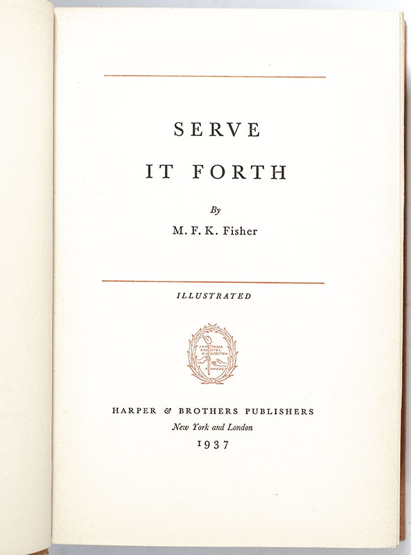 "The Finest Writer on Food"; First Edition of M.F.K. Fisher's First Book, Serve It Forth