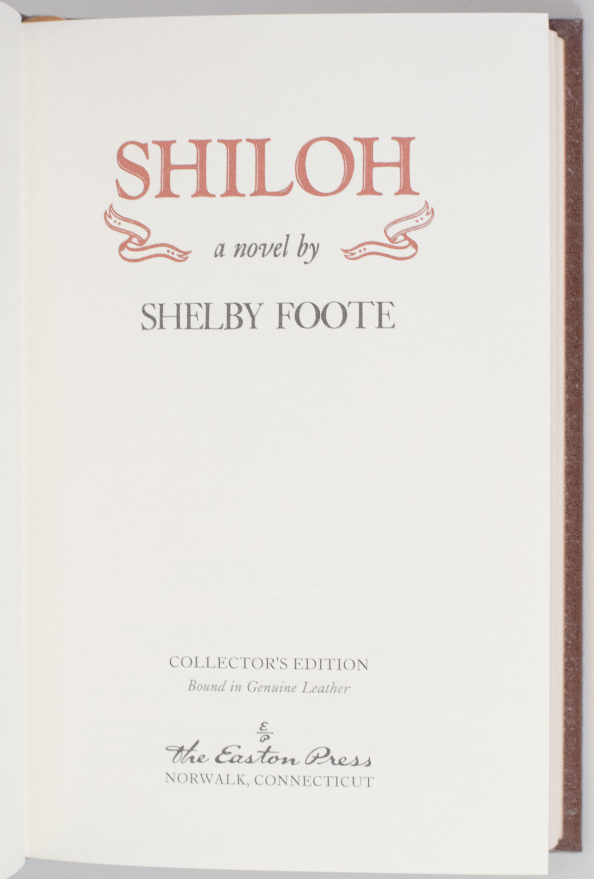 Signed limited first edition of Foote's classic fictional re-creation of the battle of Shiloh in April 1862. Octavo, original full leather, gilt titles and tooling to the spine, front and rear panels, raised bands, all edges gilt, silk endpapers, ribbon bound in. Signed by Shelby Foote. In fine condition.