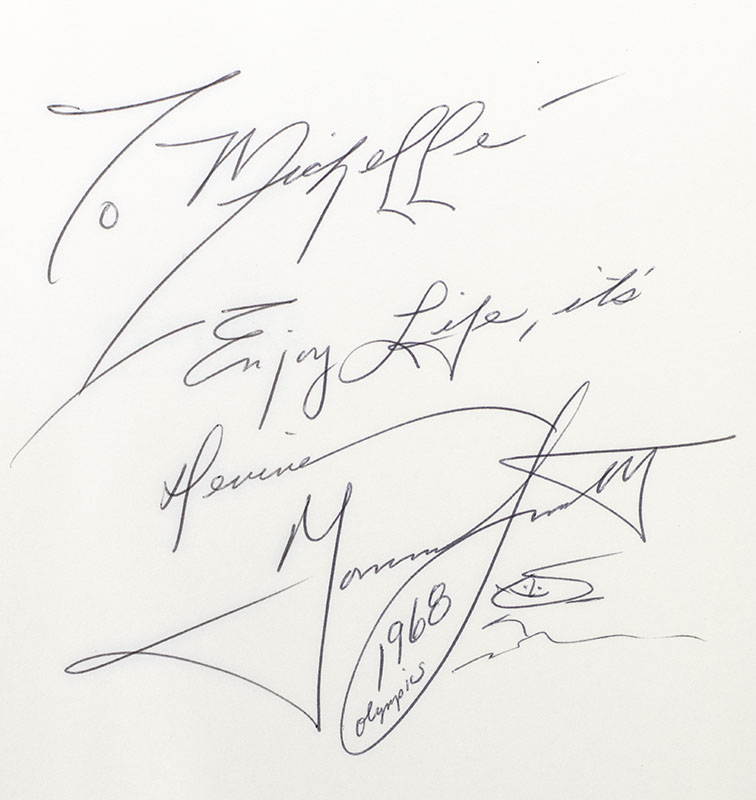 First edition of this powerful autobiography by the Olympic gold medalist. Octavo, original half cloth. Presentation copy, inscribed by the author on the front free endpaper, "To Michelle- Enjoy Life, it's divine Tommie Smith 1968 Olympics." Fine in a fine dust jacket. Jacket design by Kate Nichols. Written with David Steele.