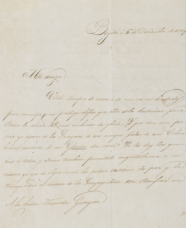 "But what does it matter what I suffer for you to enjoy? That I perish for a people to live" Rare autograph letter signed by 'El Libertador', Simón Bolívar to Ecuadorian independentista Manuela Garaycoa