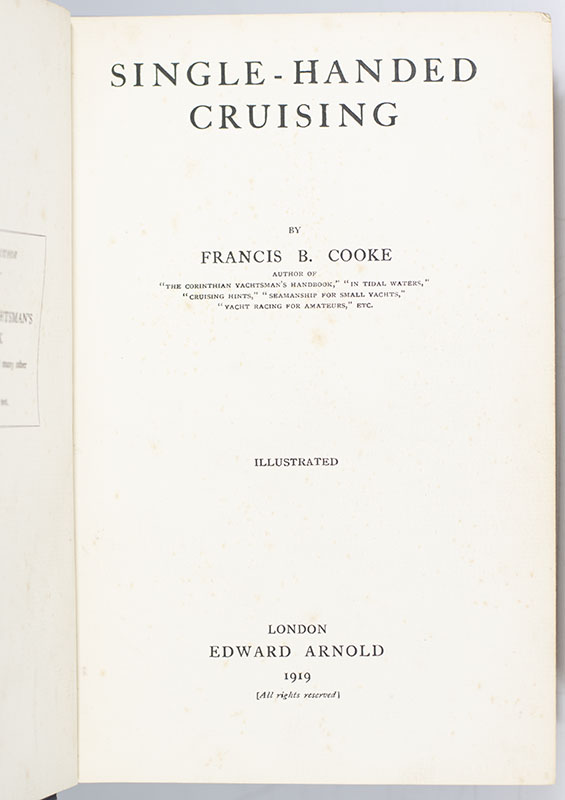 First edition of Francis B. Cooke's Single-Handed Cruising; from the library of adventurer and explorer Steve Fossett