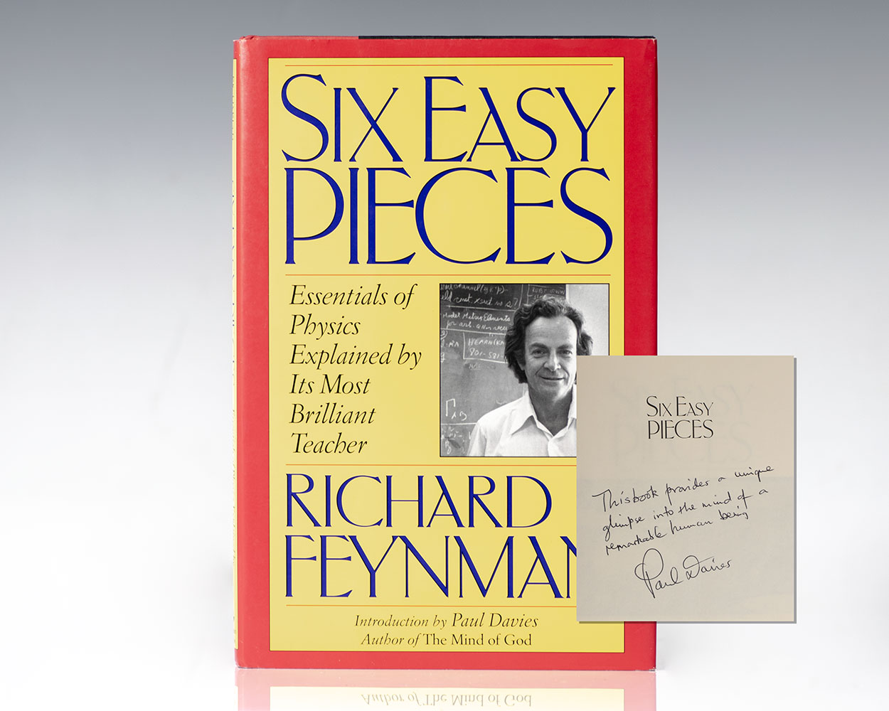 "This book provides a unique glimpse into the mind of a remarkable human being": First edition of Richard Feynman's Six Easy Pieces: Essentials of Physics Explained by Its Most Brilliant Teacher; inscribed by Paul Davies who contributed the introduction