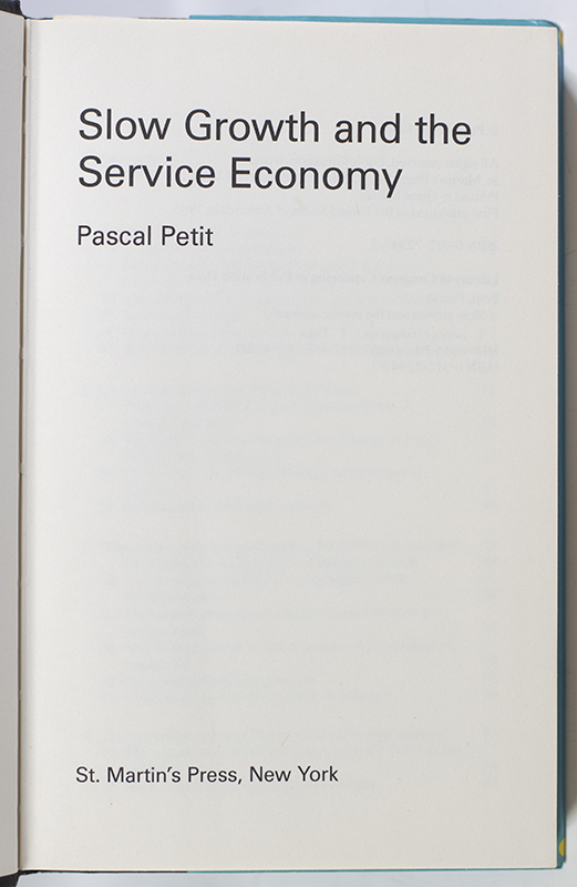 First edition of Petit Pascal's Slow Growth and the Service Economy