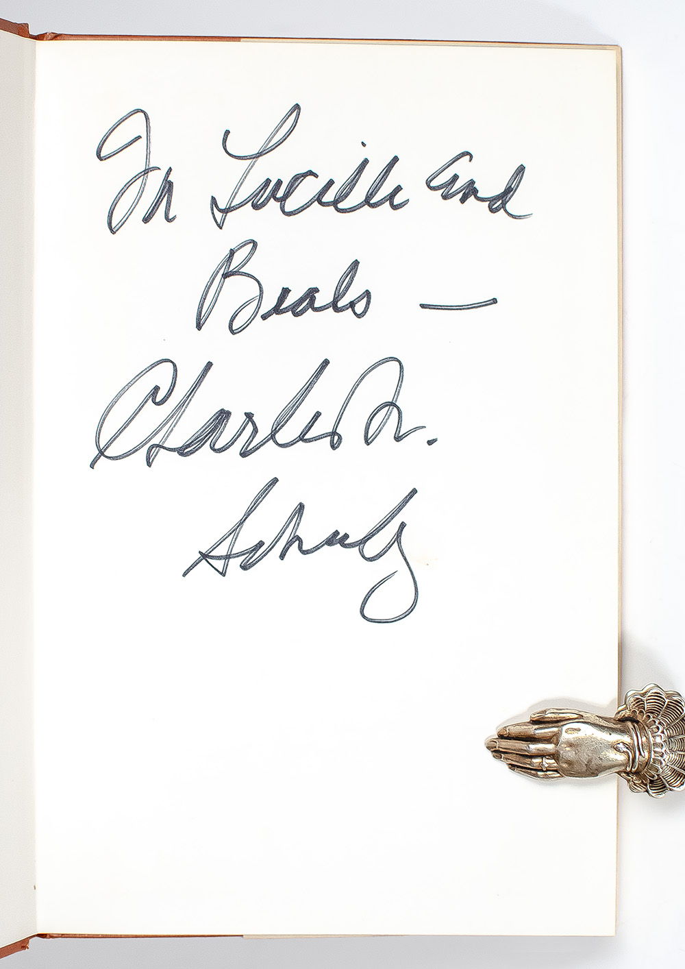 First edition of this classic work. Octavo, original cloth, illustrated throughout. Presentation copy, boldly inscribed by the author on the front free endpaper, "For Lucille and Beals - Charles M. Schulz." Near fine in a near fine dust jacket.  Rare and desirable signed and inscribed.