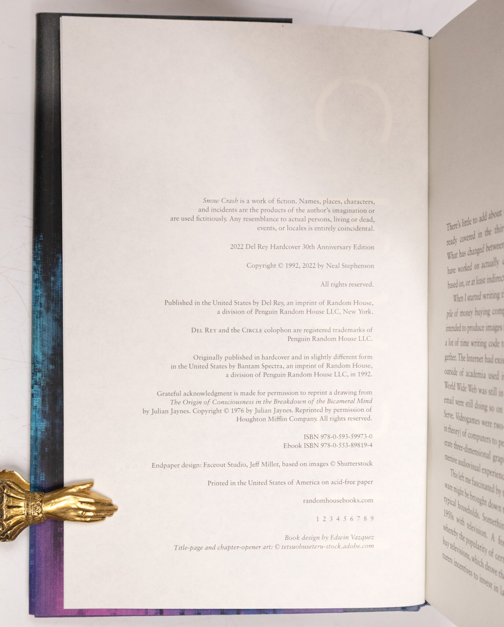 “See, the world is full of things more powerful than us. But if you know how to catch a ride, you can go places": 30th Anniversary Edition of Snow Crash; Signed by Neal Stephenson