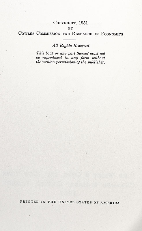 First Edition of Kenneth Arrows First Book Social Choice and Individual Values; Signed by Him; from the library of fell economist Emmanuel Drandakis