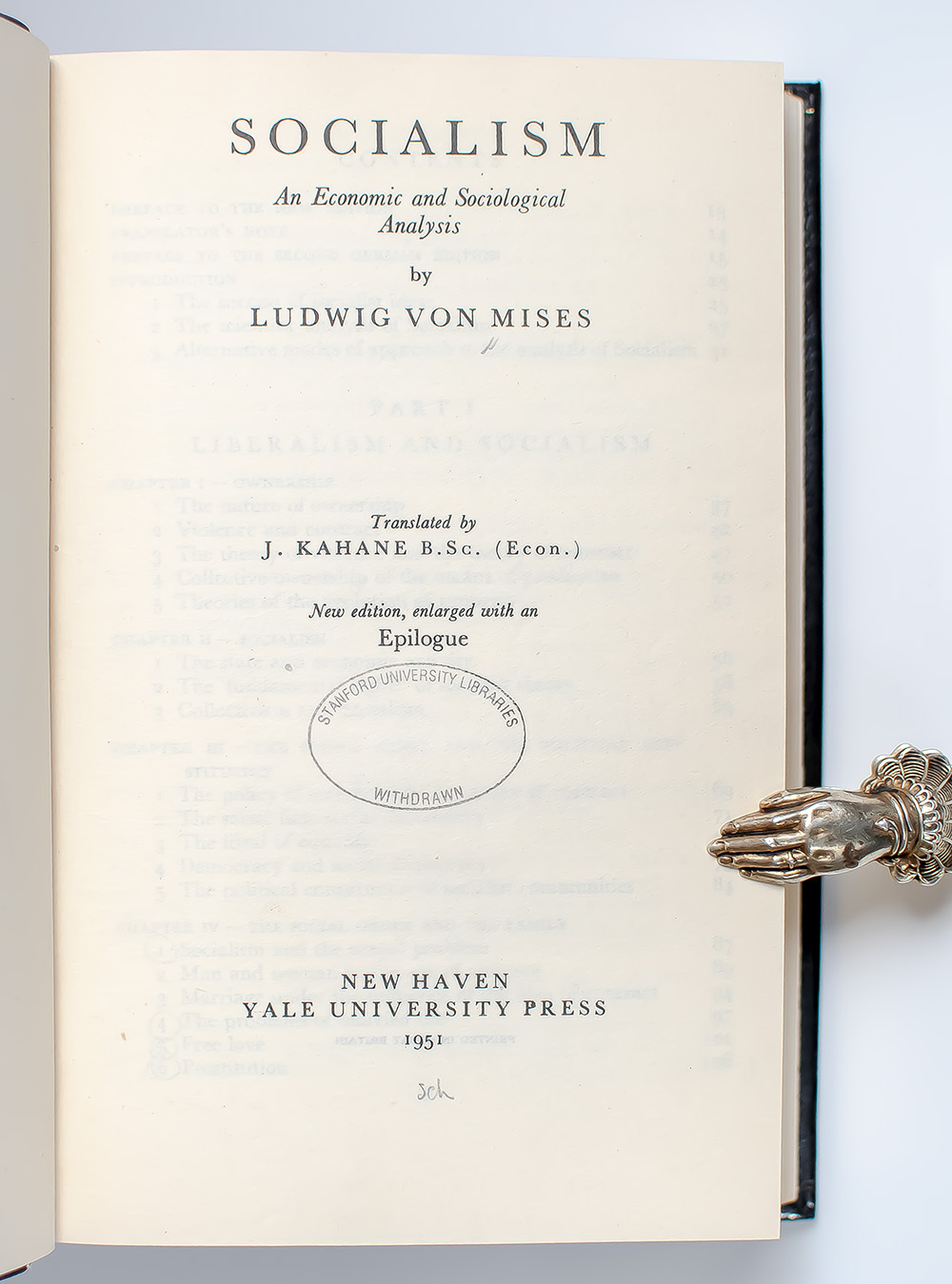 Ludwig von Mises' Socialism: An Economic and Sociological Analysis; Inscribed by Him