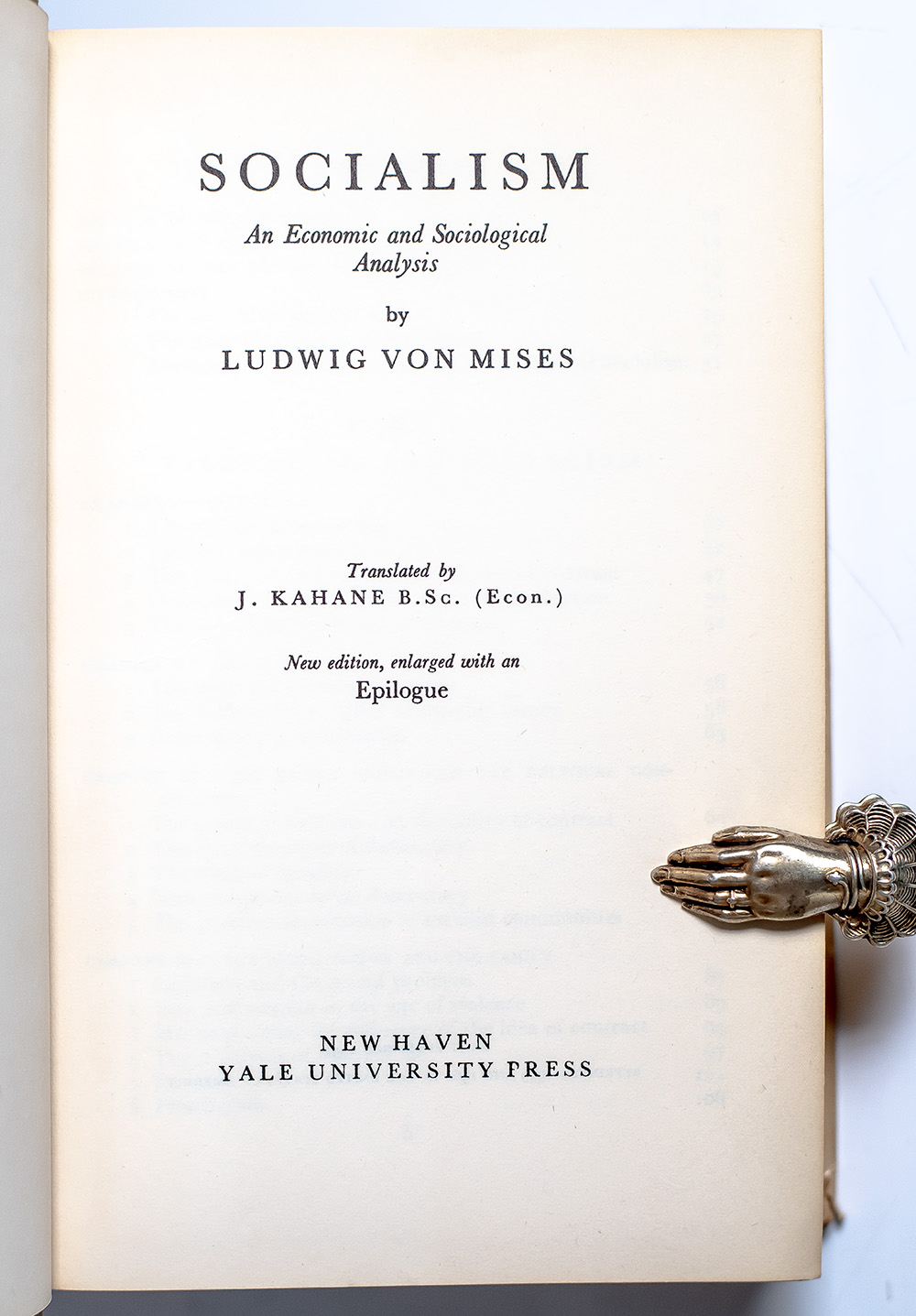 Ludwig von Mises' Socialism: An Economic and Sociological Analysis; Signed by Him