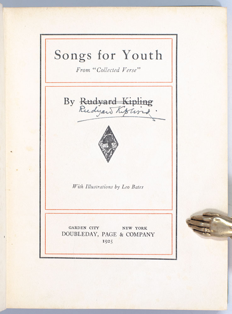 First Edition of Rudyard Kipling's Songs For Youth; Signed by Him