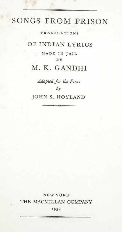 First American Edition of Gandhi's Songs from Prison: Translations of Indian lyrics Made in Jail