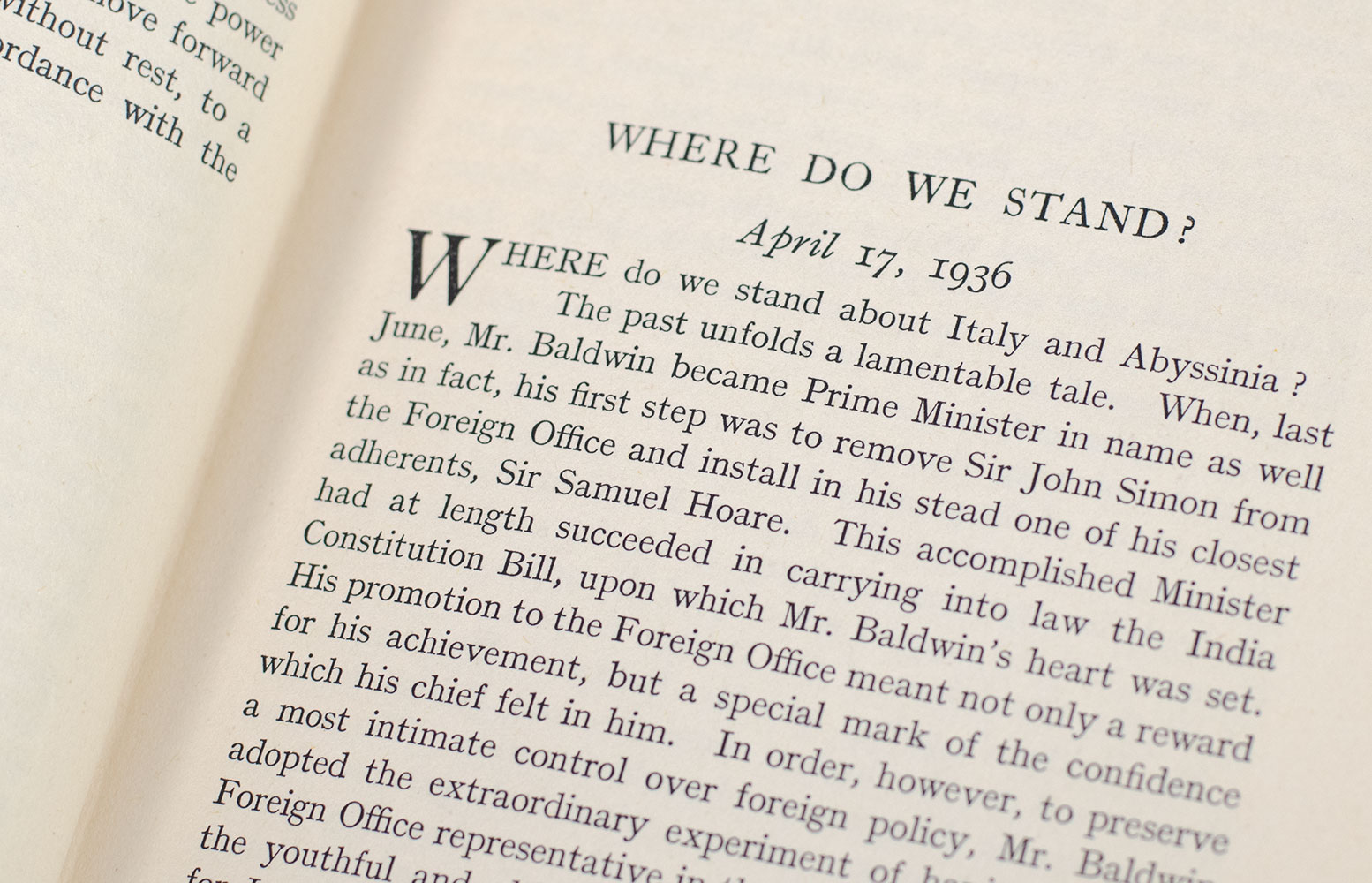 First edition of this Churchill title, the last book he published before the outbreak of the Second World War. Octavo, original cloth. Near fine in the rare original dust jacket.