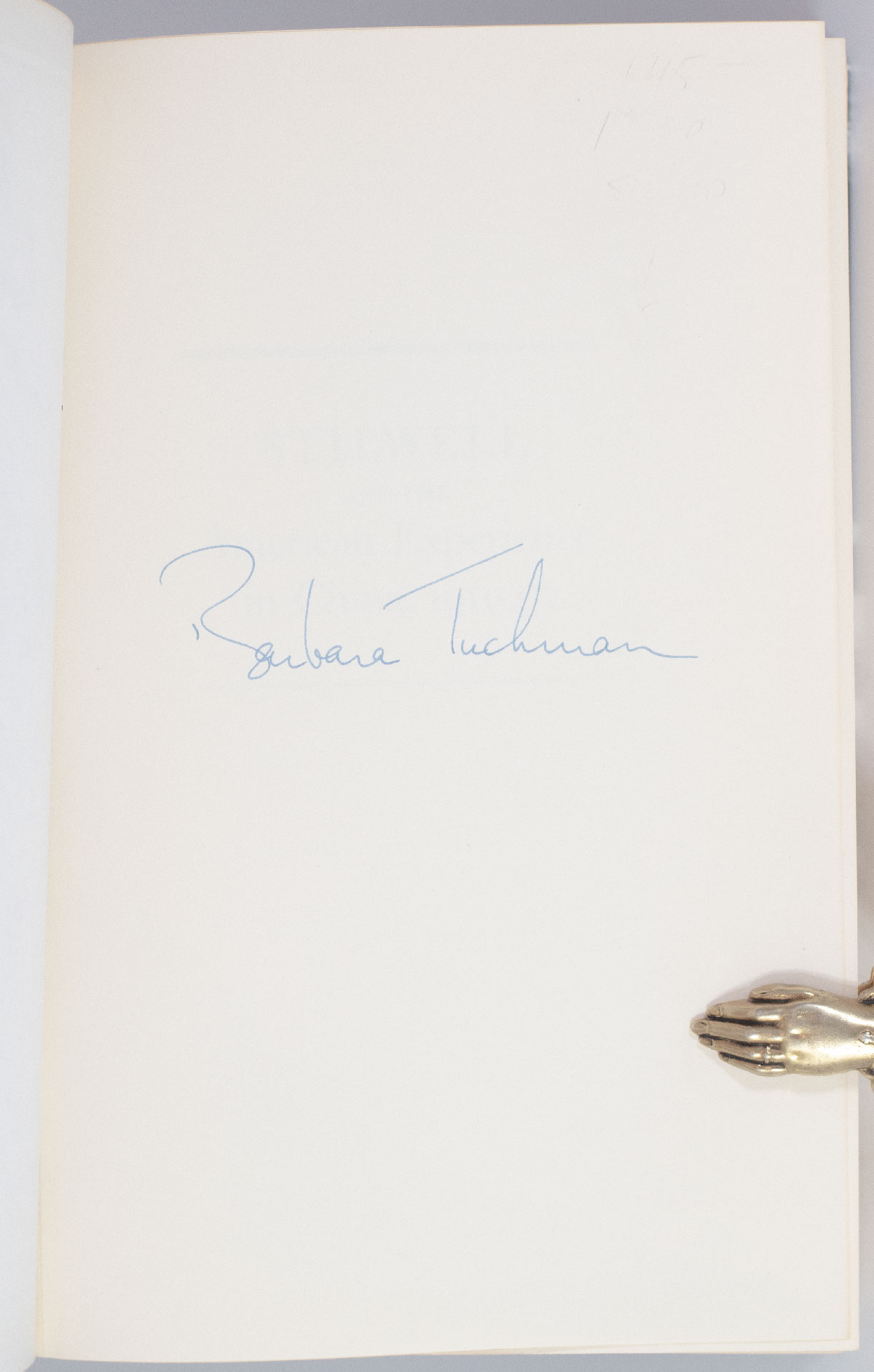 First edition of Tuchman's authoritative biography of General Joseph Stilwell. Octavo, original cloth, cartographic endpapers, illustrated with 32 pages of photographs and 4 full-page maps. Boldly signed by Barbara Tuchman. Fine in a near fine dust jacket. Jacket design by Robert Galster.