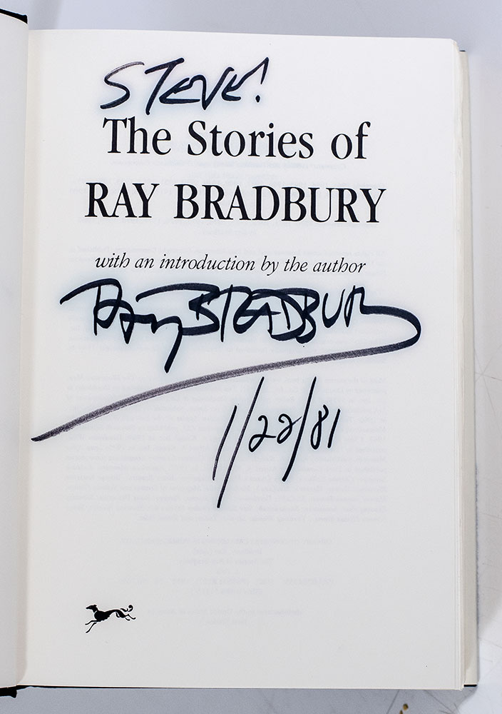 First edition of the definitive collection of the stories of Ray Bradbury. Octavo, original cloth. Presentation copy, inscribed by the author on the title page, "Steve! Ray Bradbury 1/22/81." Near fine in a near fine dust jacket. Jacket design by R.D. Scudellari. An exceptional example.