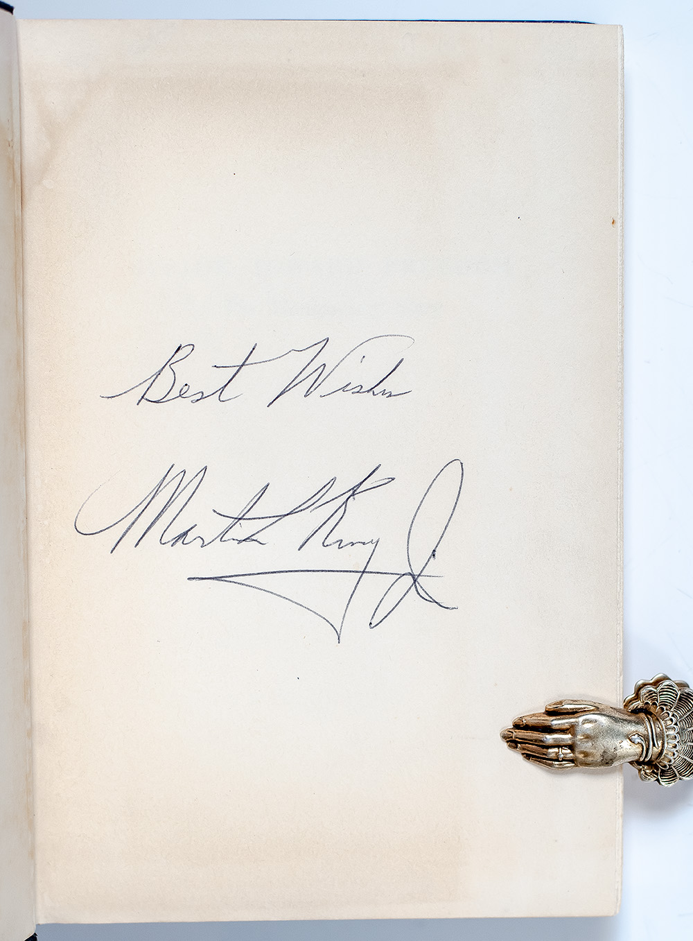First edition, early printing of Dr. Martin Luther King’s first book. Octavo, original half cloth, illustrated. Boldly signed by the author on the front free endpaper, "Best Wishes Martin Luther King, Jr." Fine in a near fine dust jacket. Rare and desirable signed.